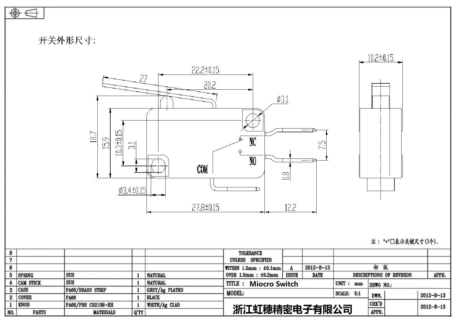 .請根據額定值電流、操作負載、驅動桿的種類、使用溫度等要求選擇合適型號的開關;