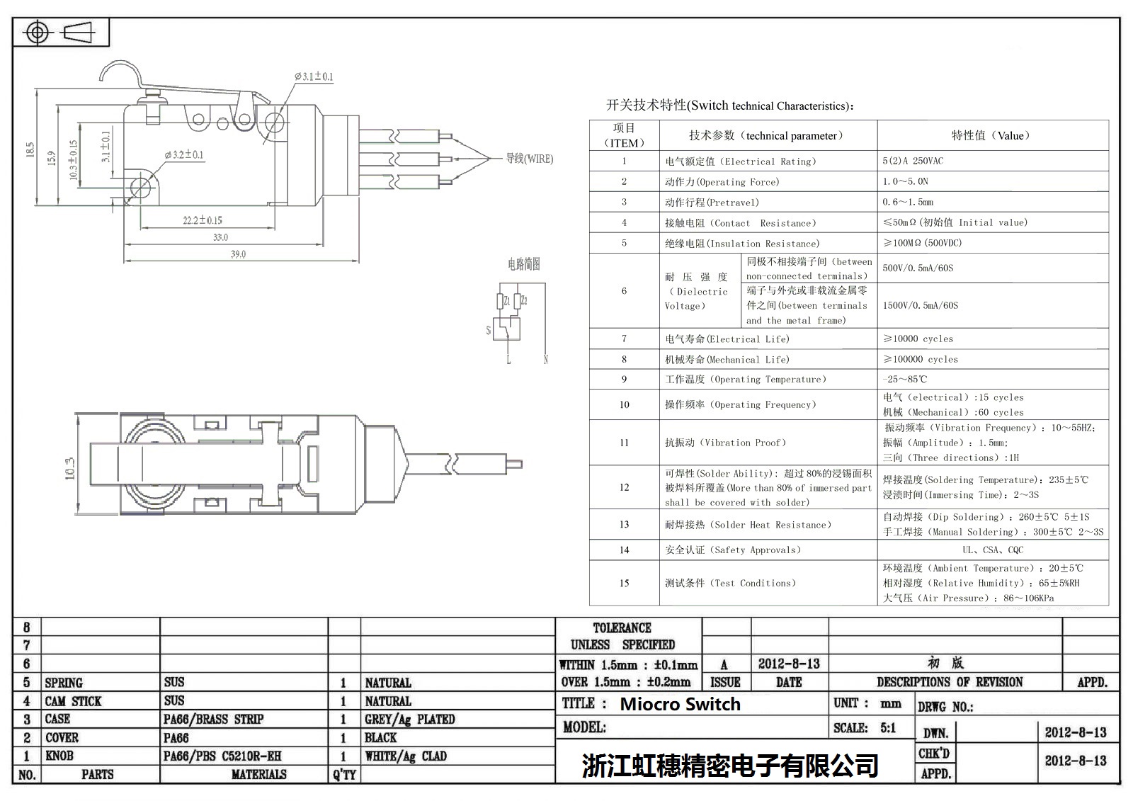 .請根據額定值電流、操作負載、驅動桿的種類、使用溫度等要求選擇合適型號的開關;