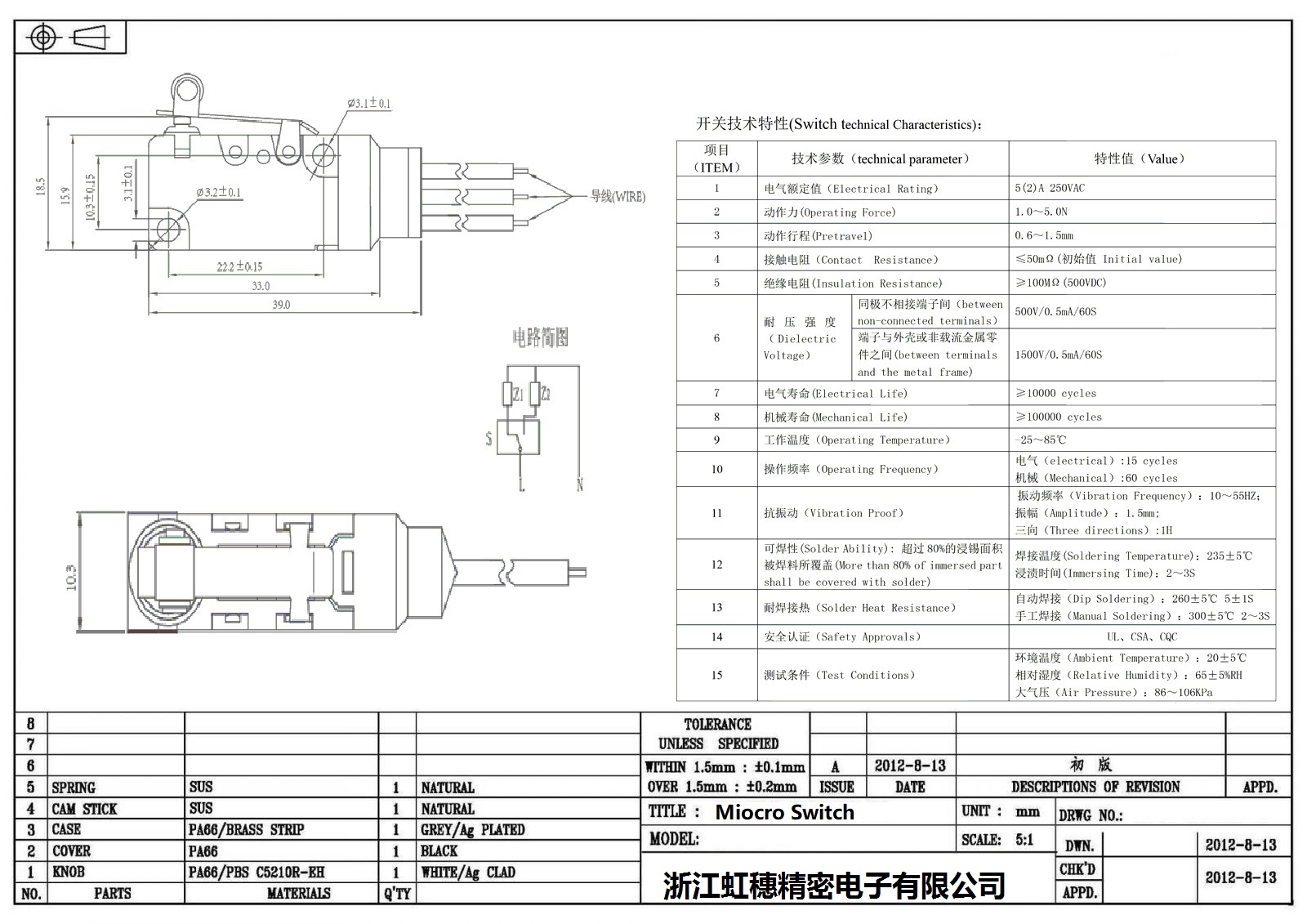 微動開關電氣特性