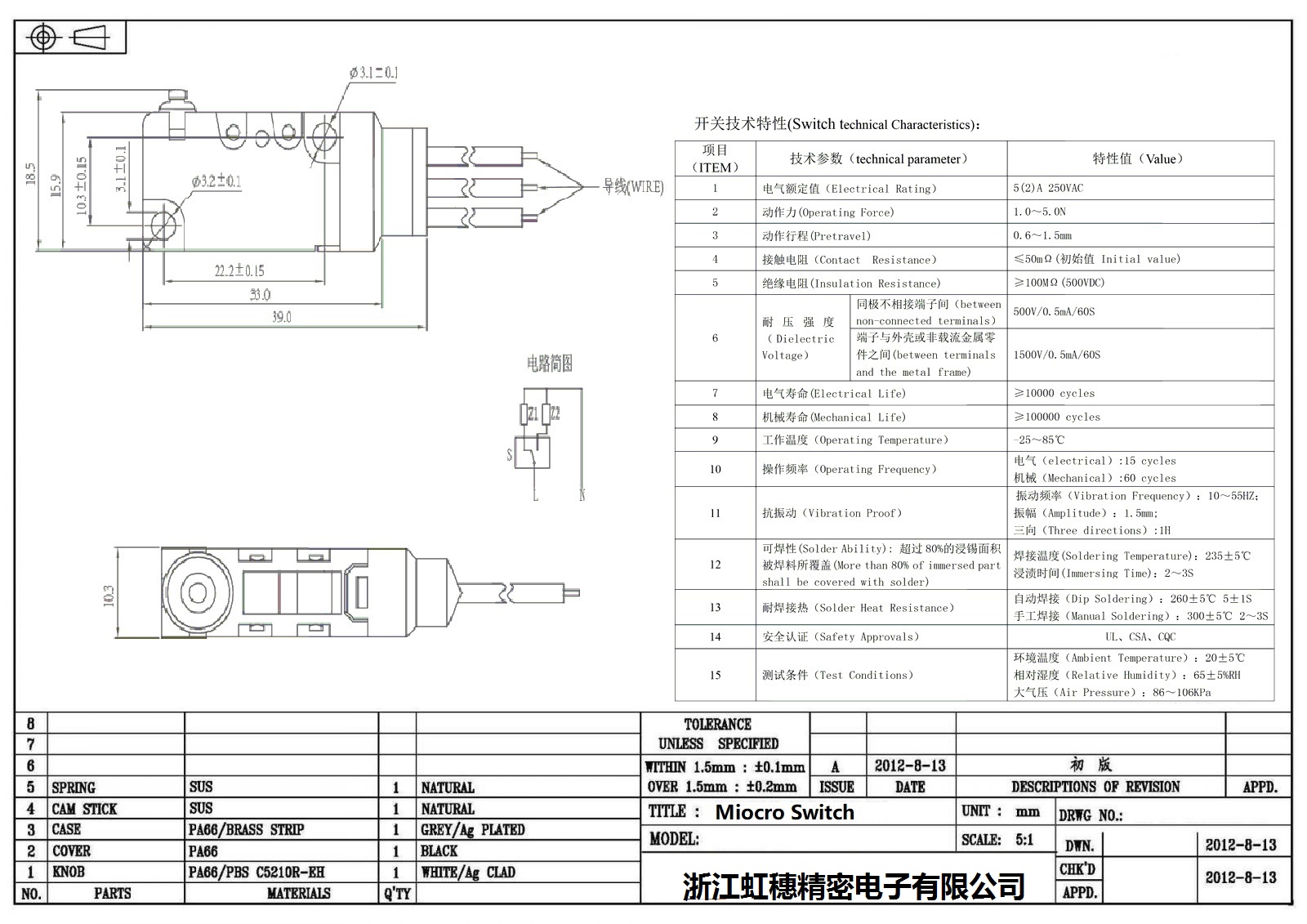 .請根據額定值電流、操作負載、驅動桿的種類、使用溫度等要求選擇合適型號的開關;