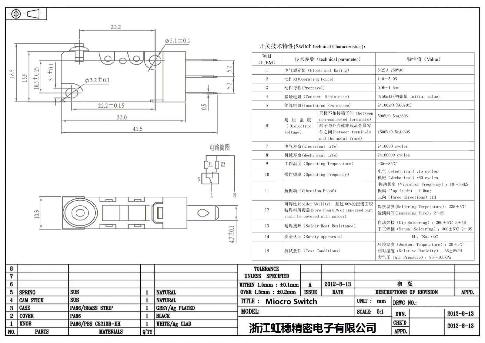 微動開關電氣特性