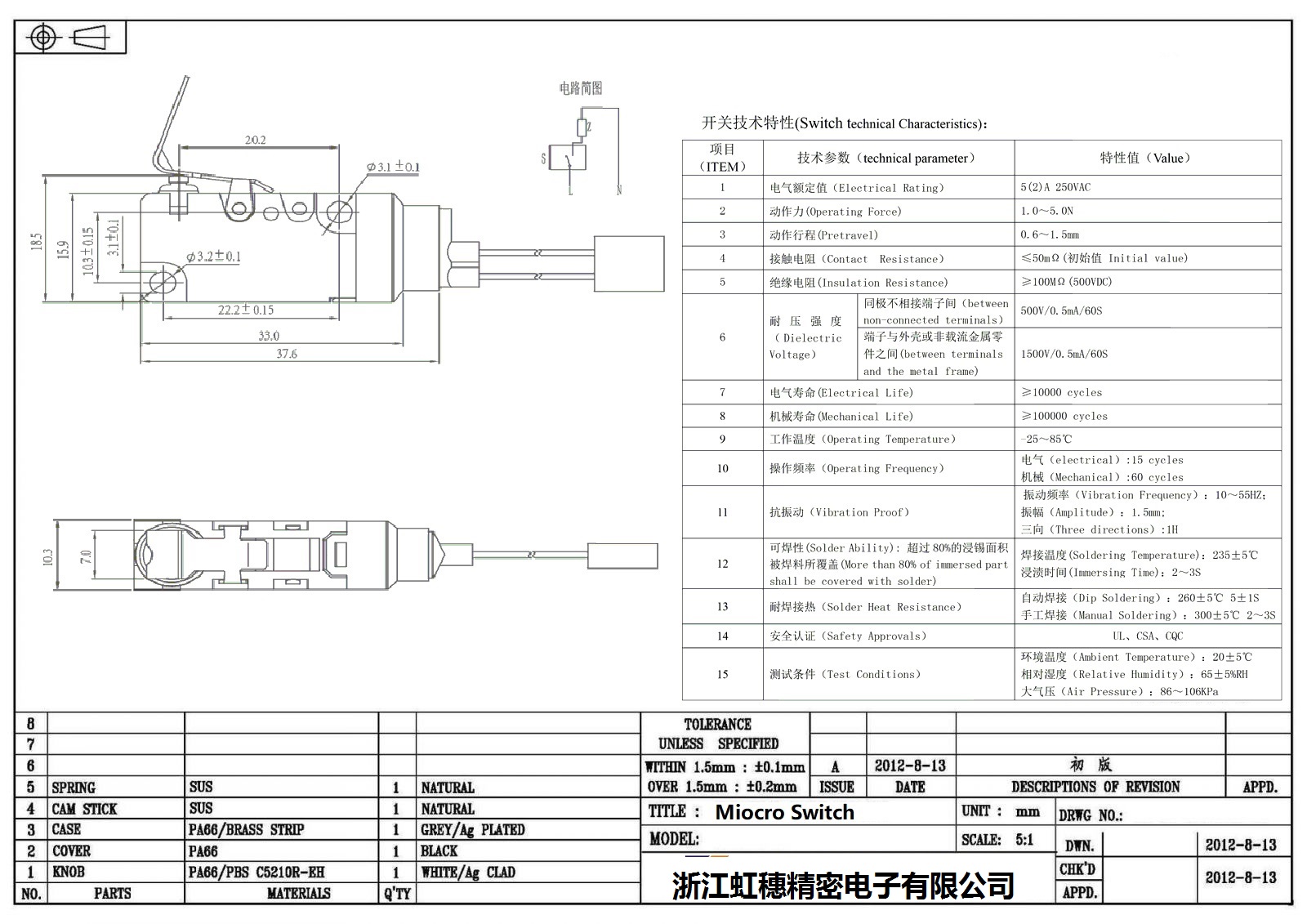.請(qǐng)根據(jù)額定值電流、操作負(fù)載、驅(qū)動(dòng)桿的種類、使用溫度等要求選擇合適型號(hào)的開(kāi)關(guān);