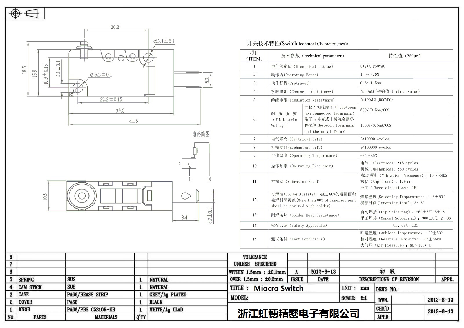 .請根據額定值電流、操作負載、驅動桿的種類、使用溫度等要求選擇合適型號的開關;