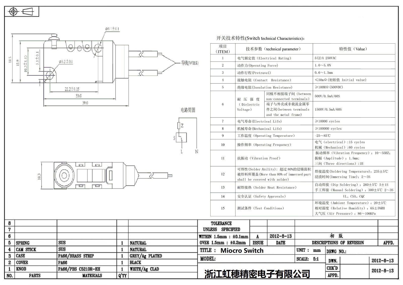 微動(dòng)開(kāi)關(guān)電氣特性