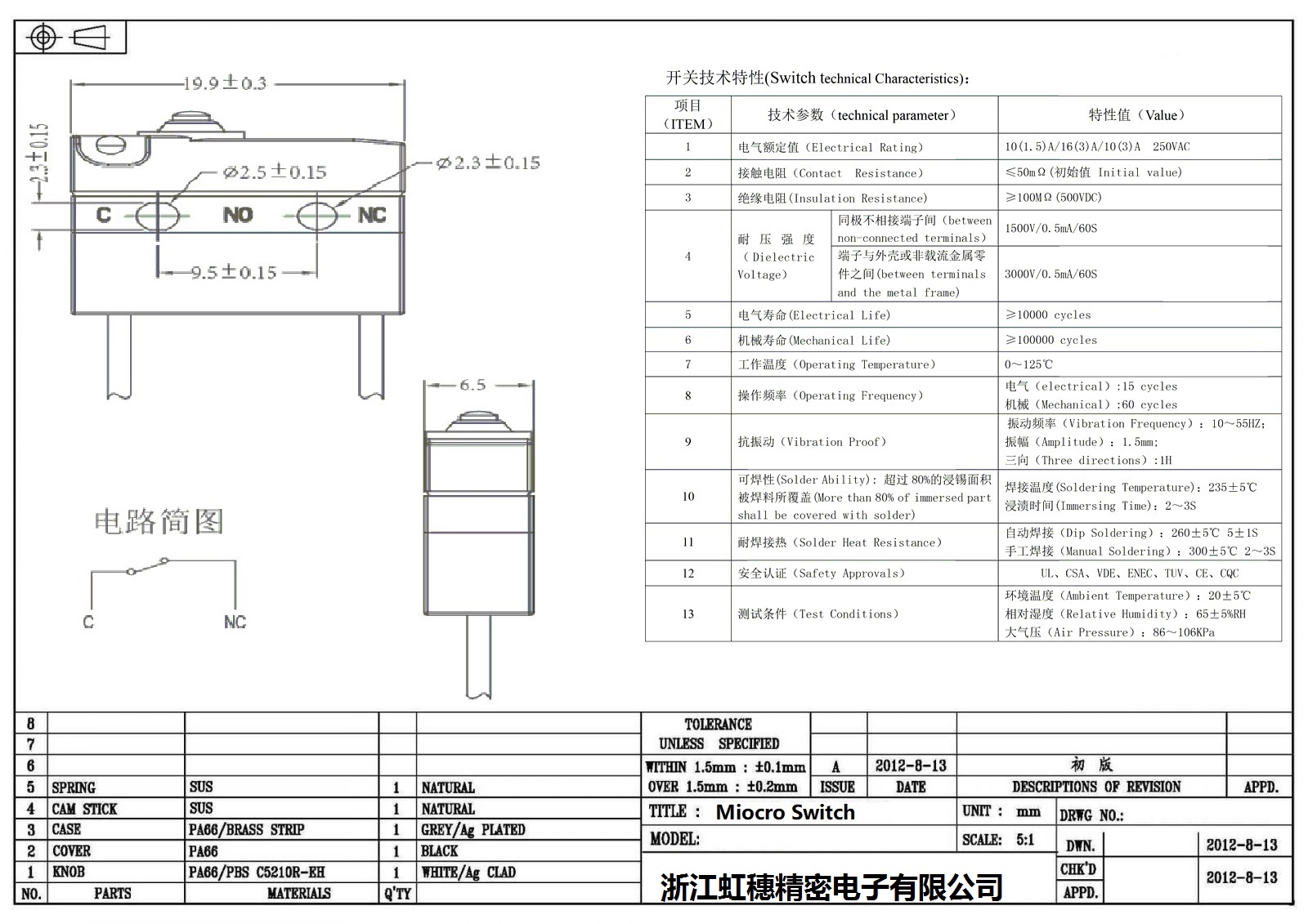 微動(dòng)開(kāi)關(guān)電氣特性