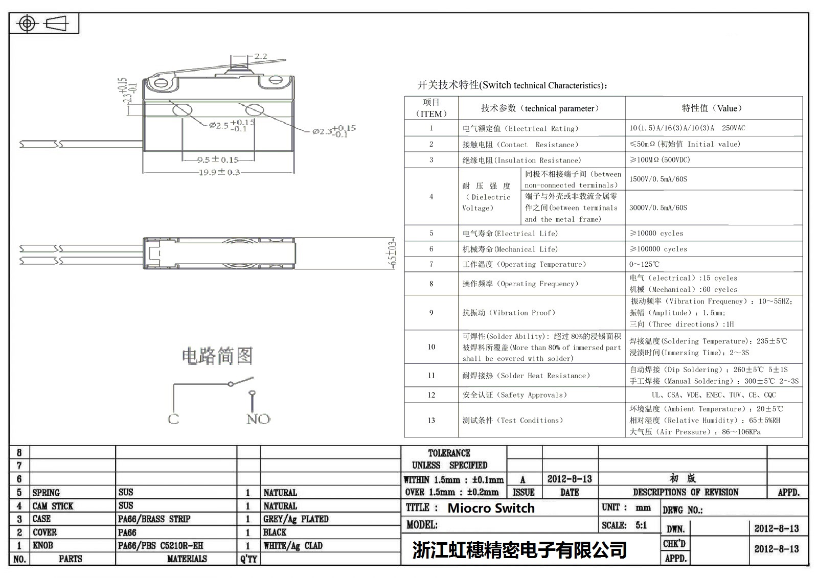 .請根據額定值電流、操作負載、驅動桿的種類、使用溫度等要求選擇合適型號的開關;