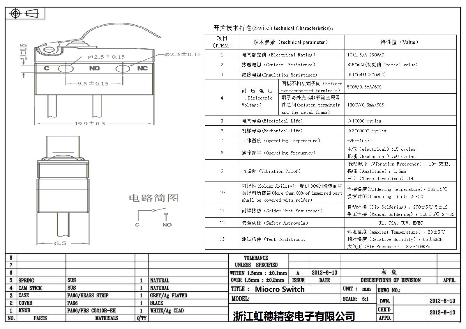 微動開關電氣特性