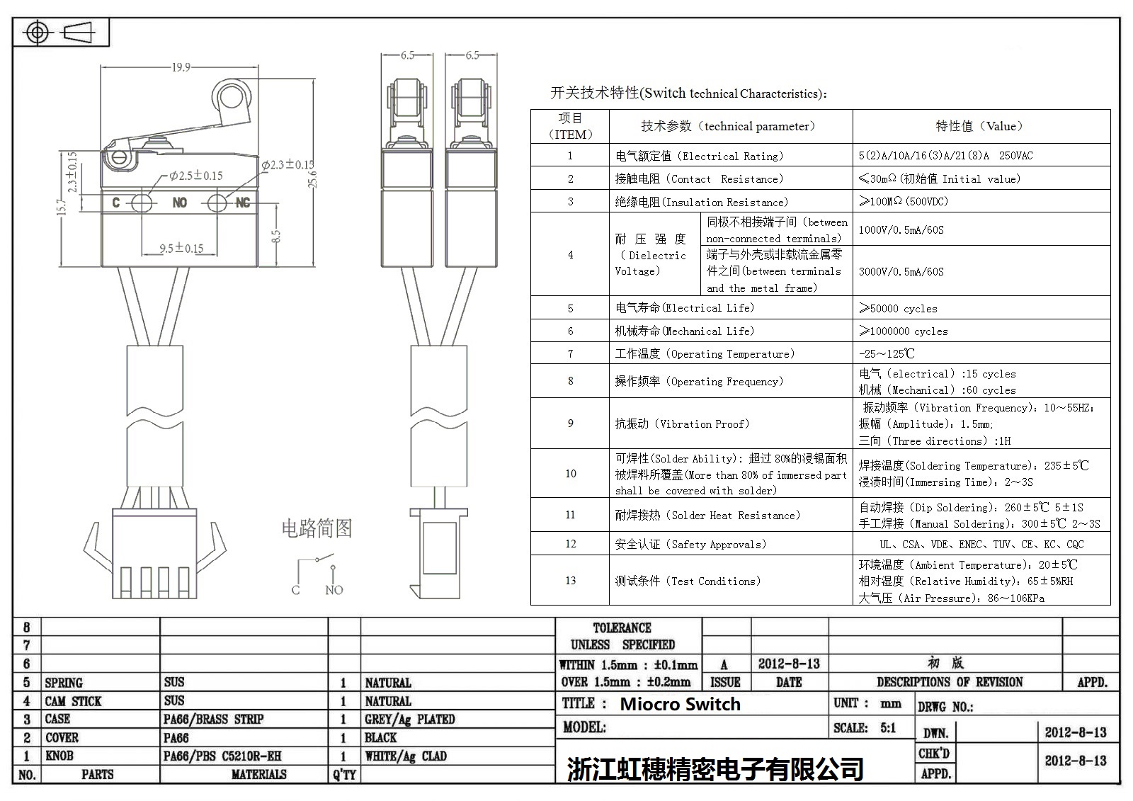 .請根據額定值電流、操作負載、驅動桿的種類、使用溫度等要求選擇合適型號的開關;