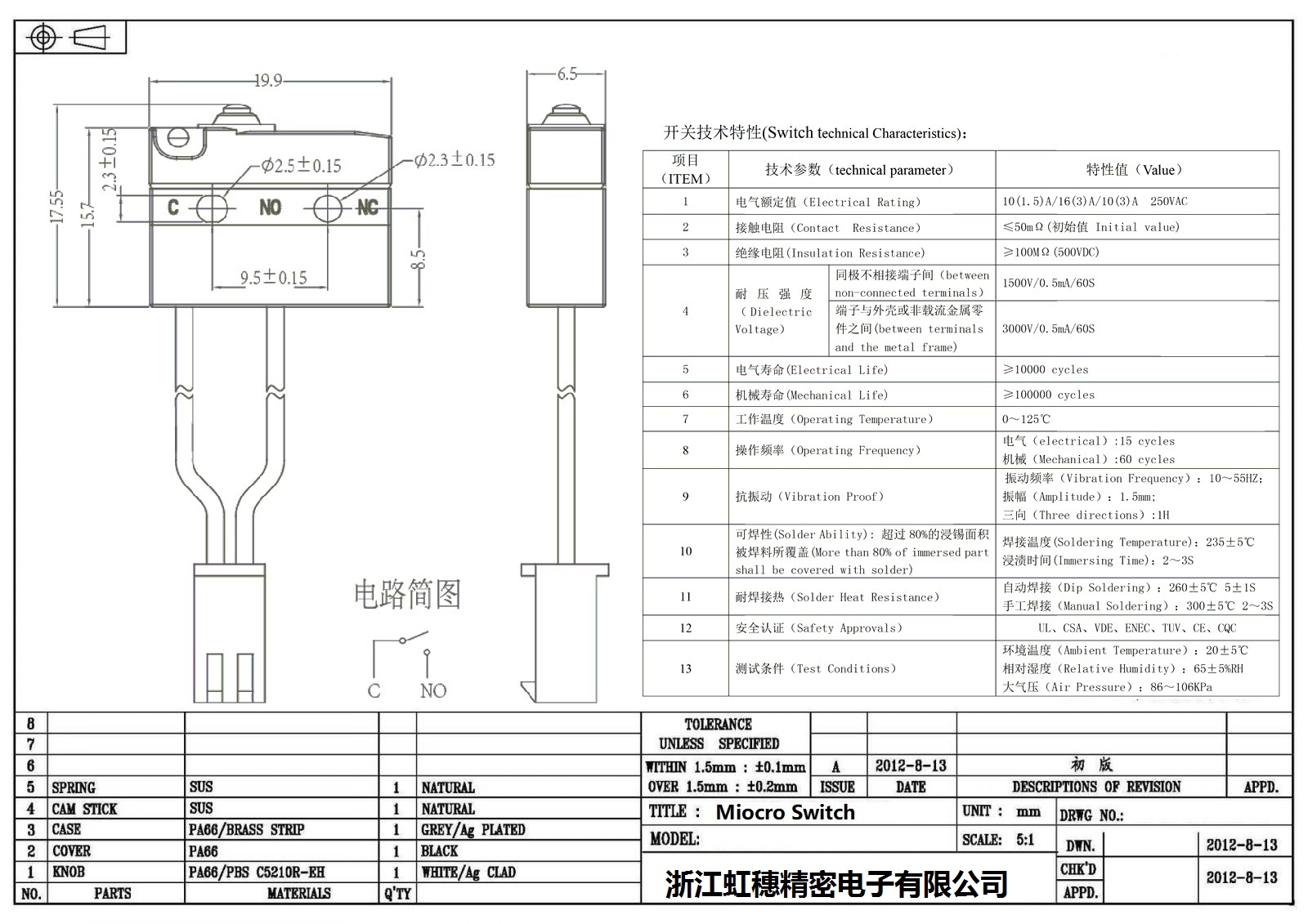 微動(dòng)開關(guān)電氣特性