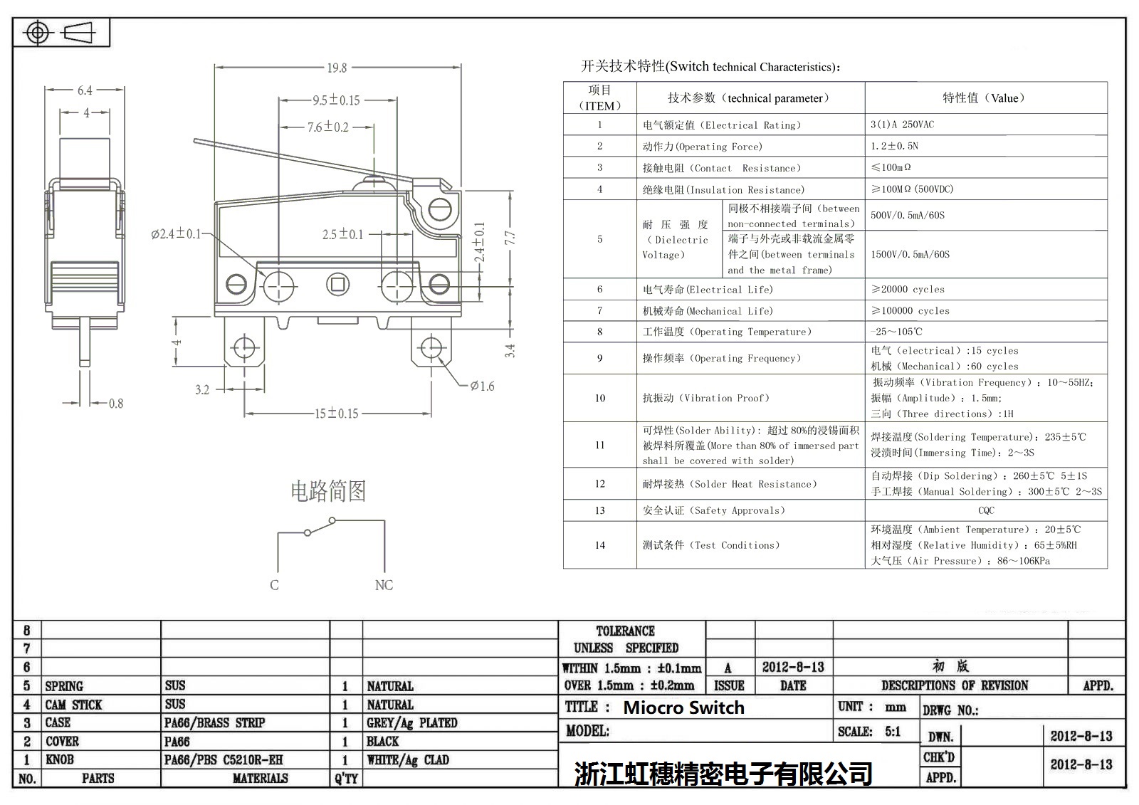 微動開關電氣特性