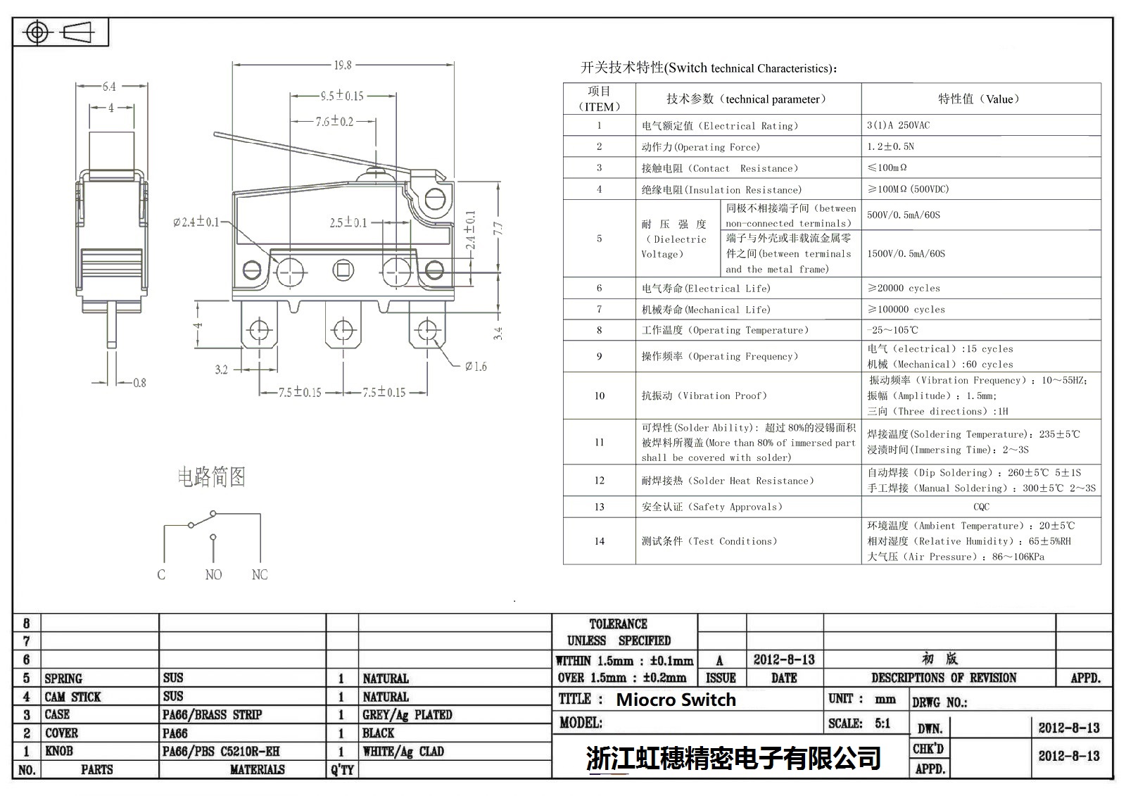 微動開關電氣特性