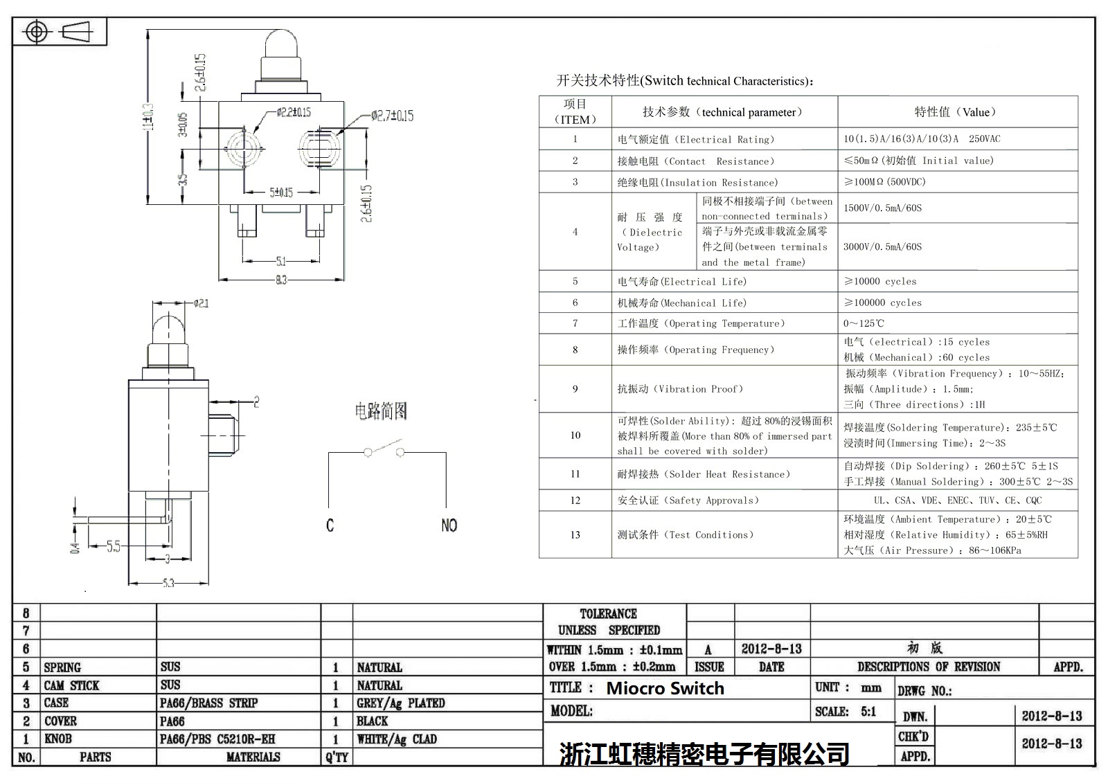 .請根據額定值電流、操作負載、驅動桿的種類、使用溫度等要求選擇合適型號的開關;