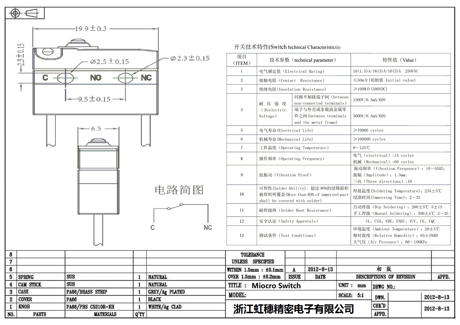.請根據額定值電流、操作負載、驅動桿的種類、使用溫度等要求選擇合適型號的開關;