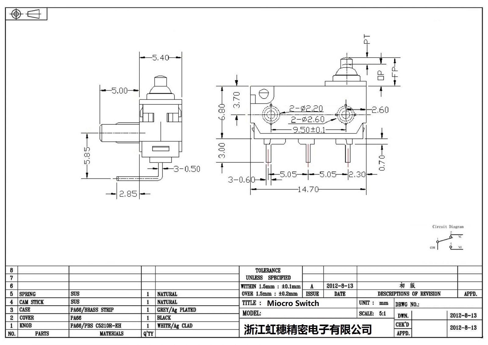 四.請將開關(guān)安裝在平面上,并用平墊圈或彈簧墊圈緊固,如果安裝面凹凸不平,會導致開關(guān)功能失效或破損。