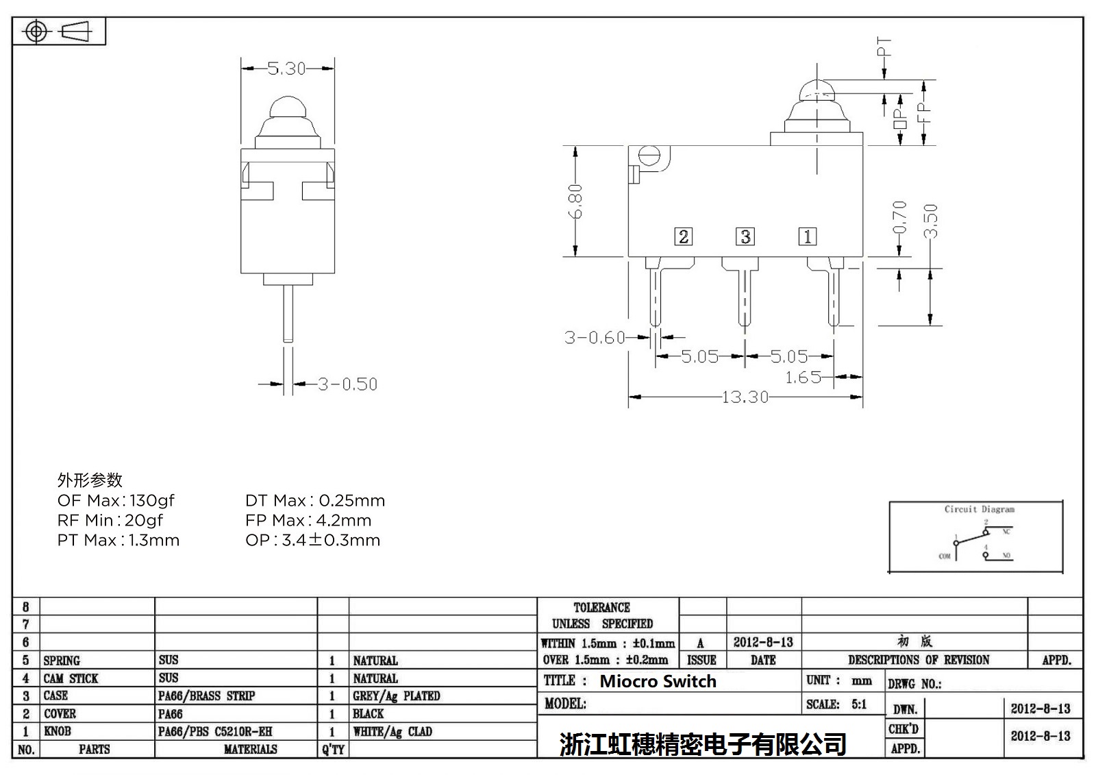 .請根據額定值電流、操作負載、驅動桿的種類、使用溫度等要求選擇合適型號的開關;