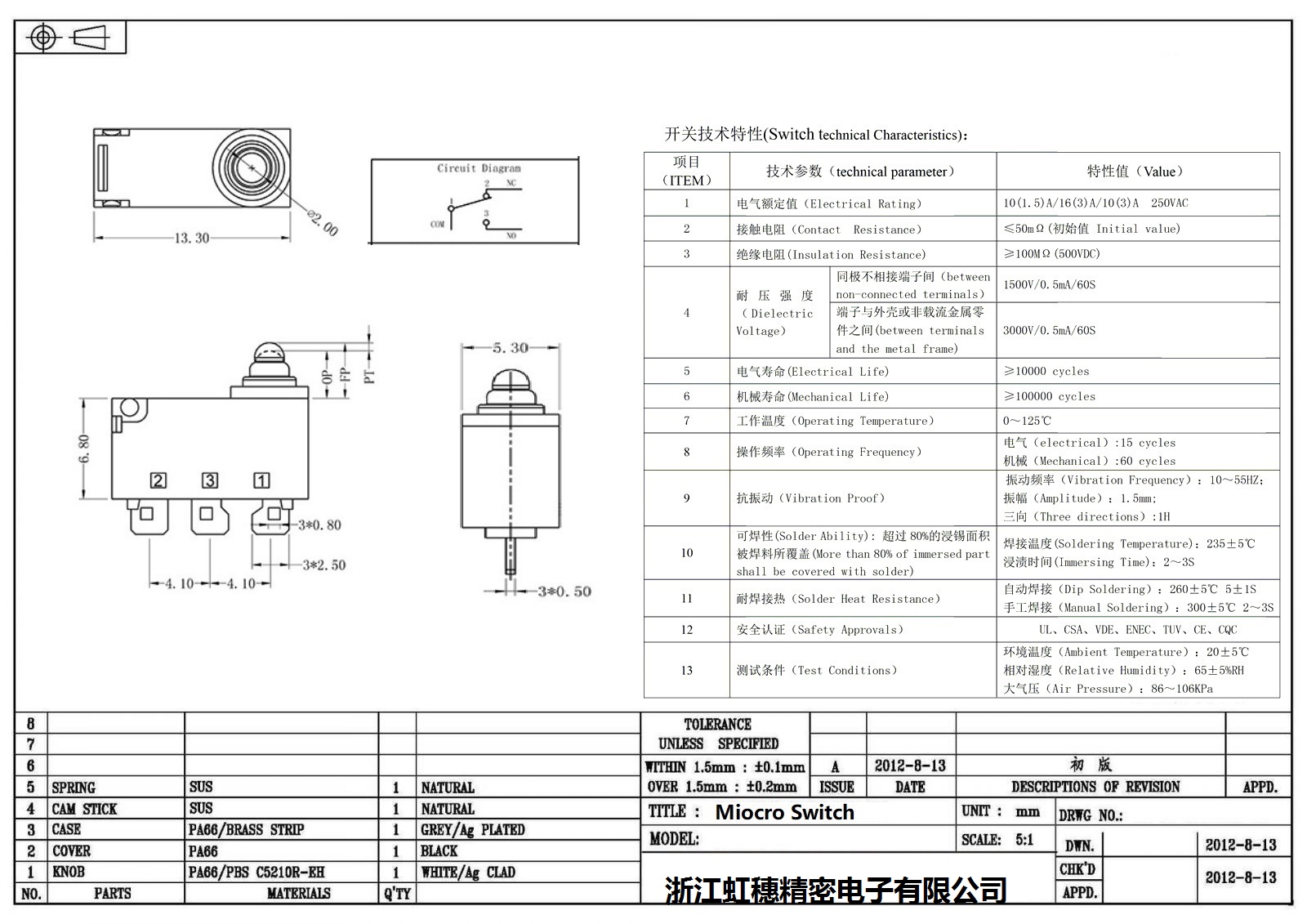 微動開關電氣特性