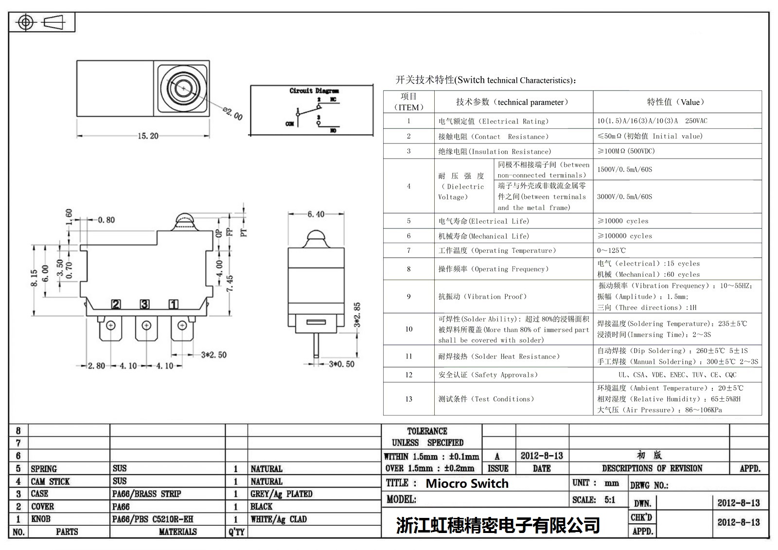 .請根據額定值電流、操作負載、驅動桿的種類、使用溫度等要求選擇合適型號的開關;