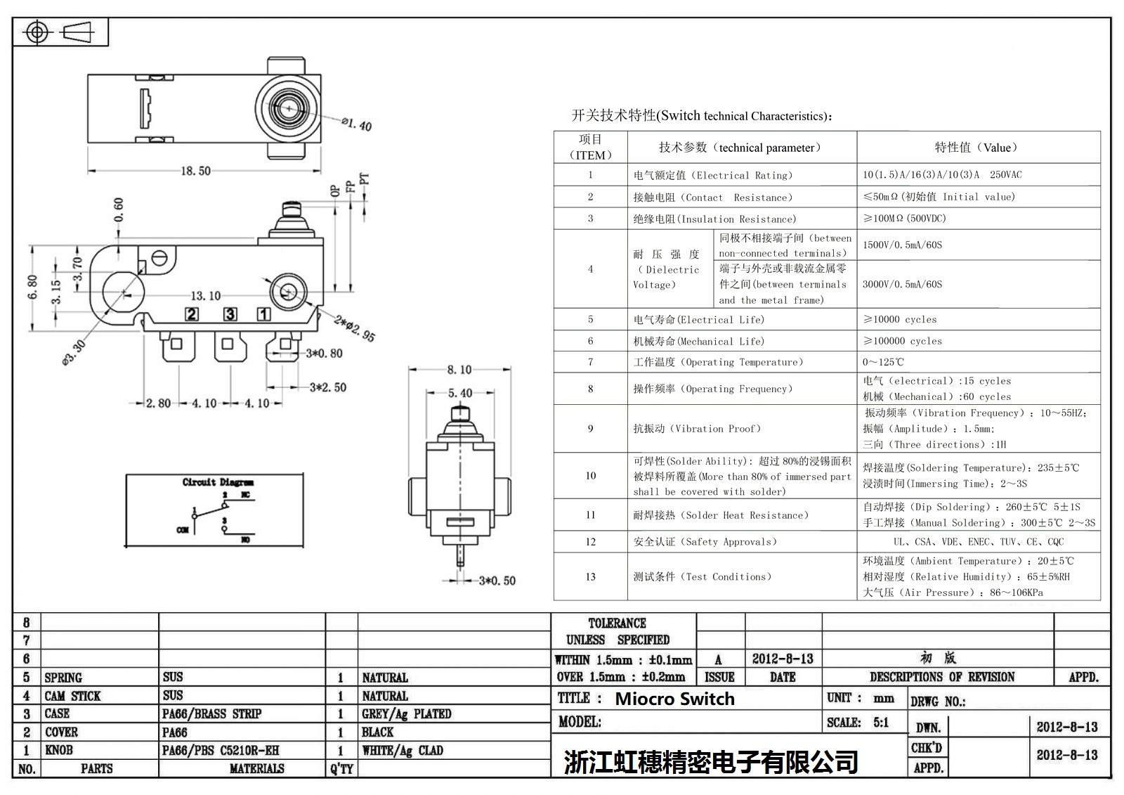 微動開關電氣特性