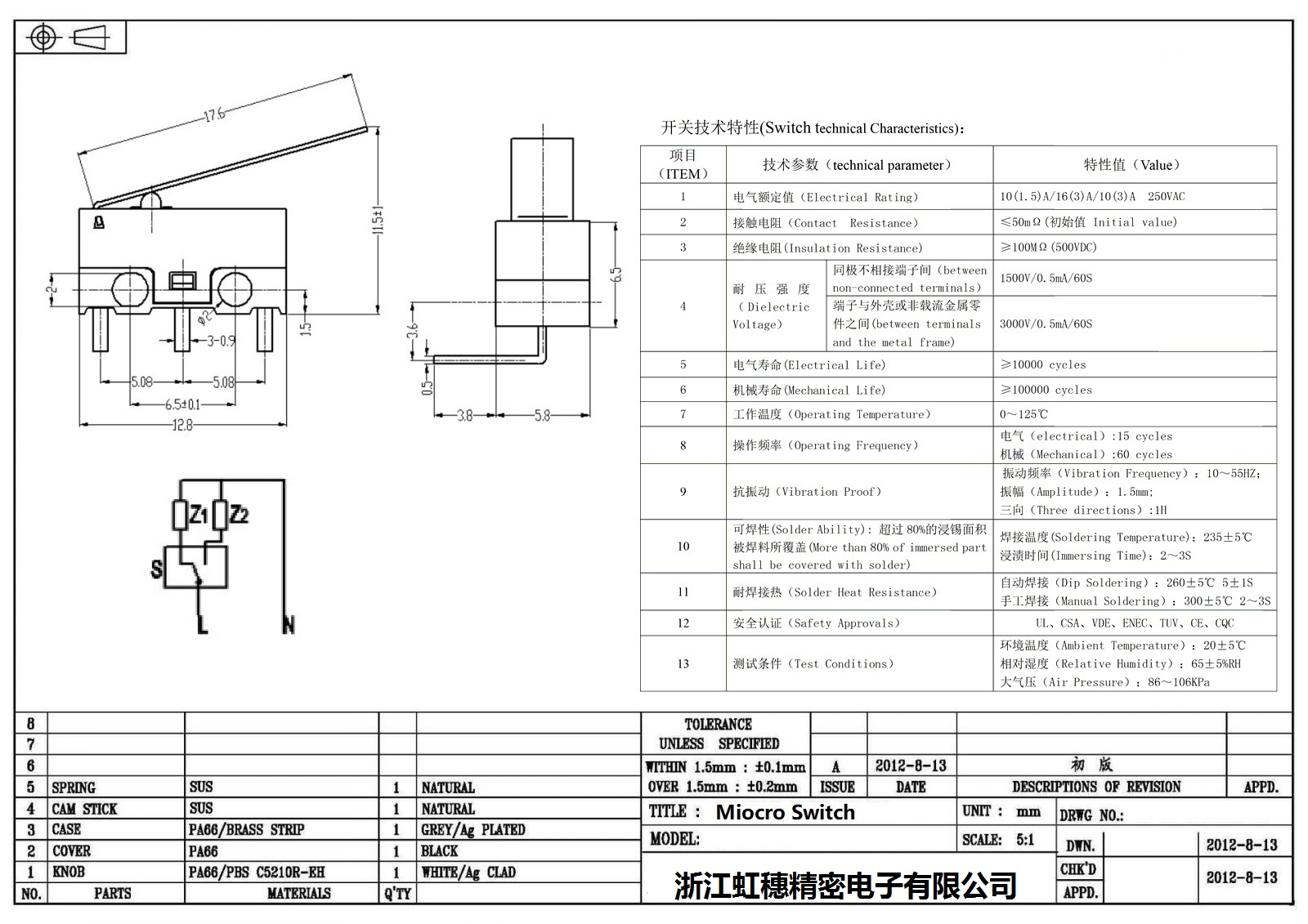 .請根據(jù)額定值電流、操作負(fù)載、驅(qū)動桿的種類、使用溫度等要求選擇合適型號的開關(guān);