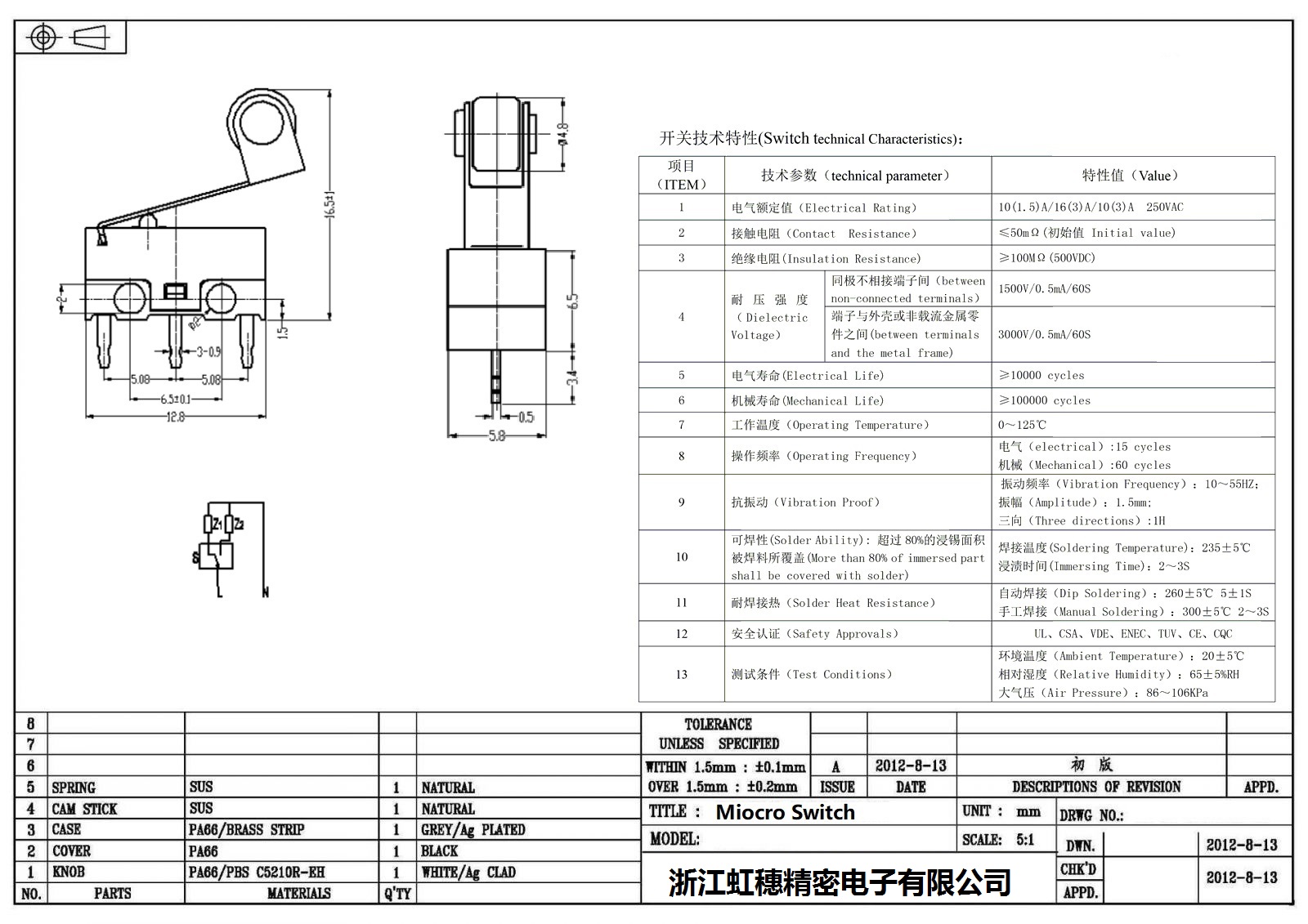 一.請(qǐng)根據(jù)額定值電流、操作負(fù)載、驅(qū)動(dòng)桿的種類、使用溫度等要求選擇合適型號(hào)的開(kāi)關(guān);
