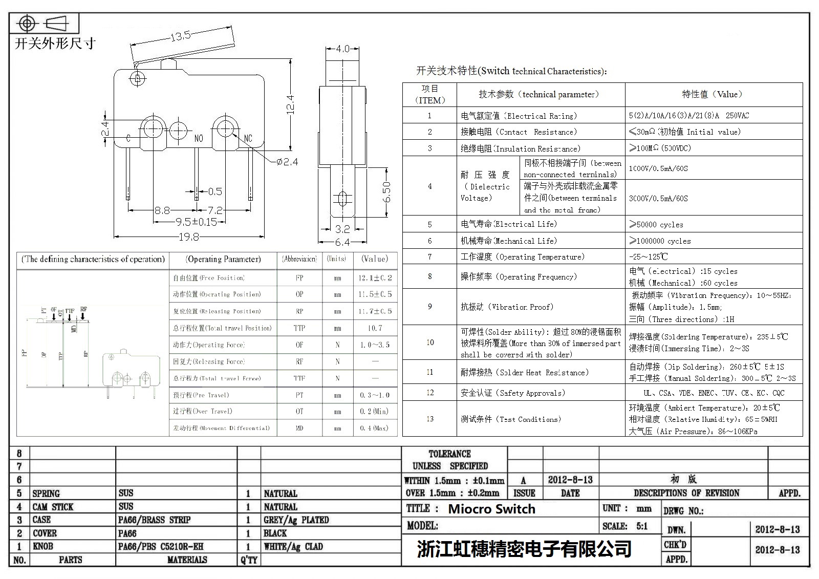 微動開關電氣特性