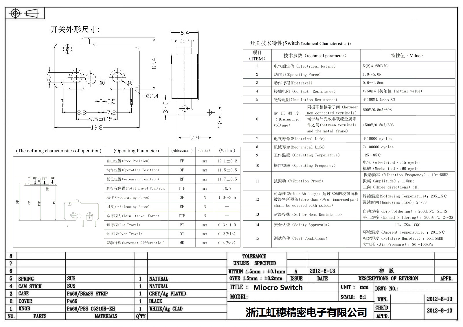 微動開關電氣特性
