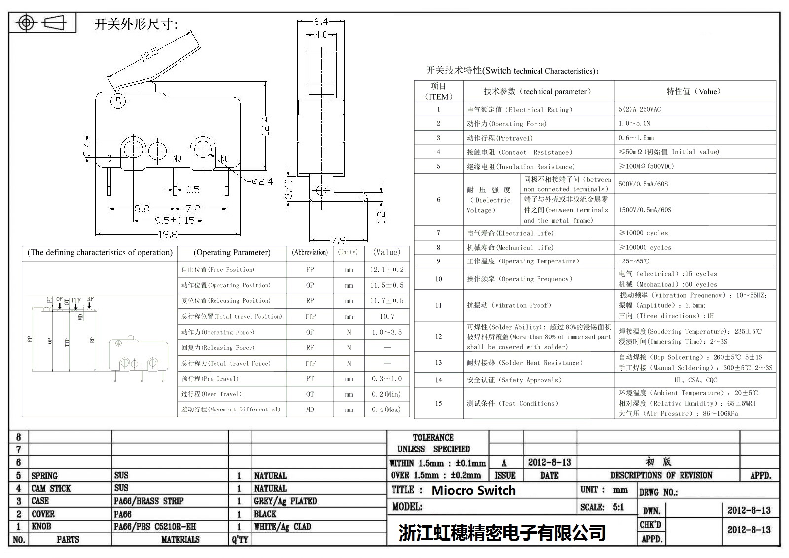微動開關(guān)電氣特性