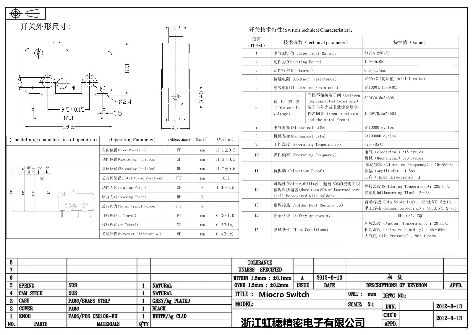 微動開關電氣特性