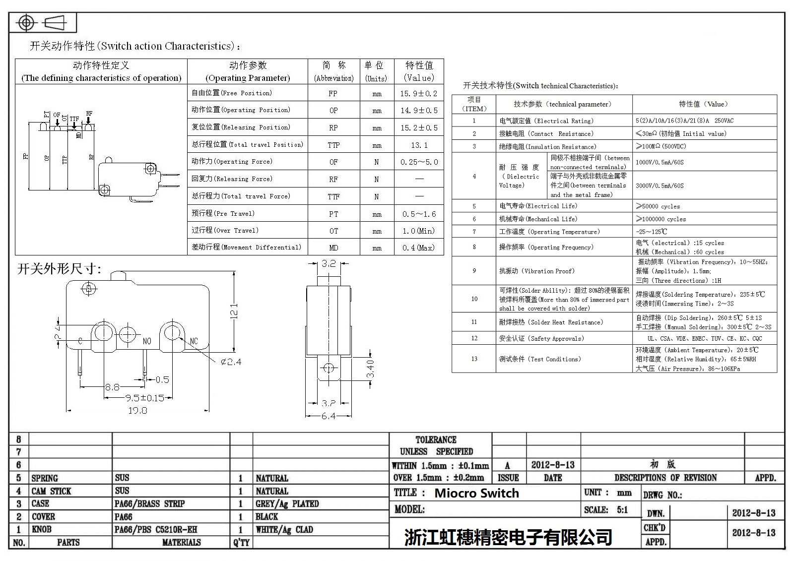 .請根據額定值電流、操作負載、驅動桿的種類、使用溫度等要求選擇合適型號的開關;