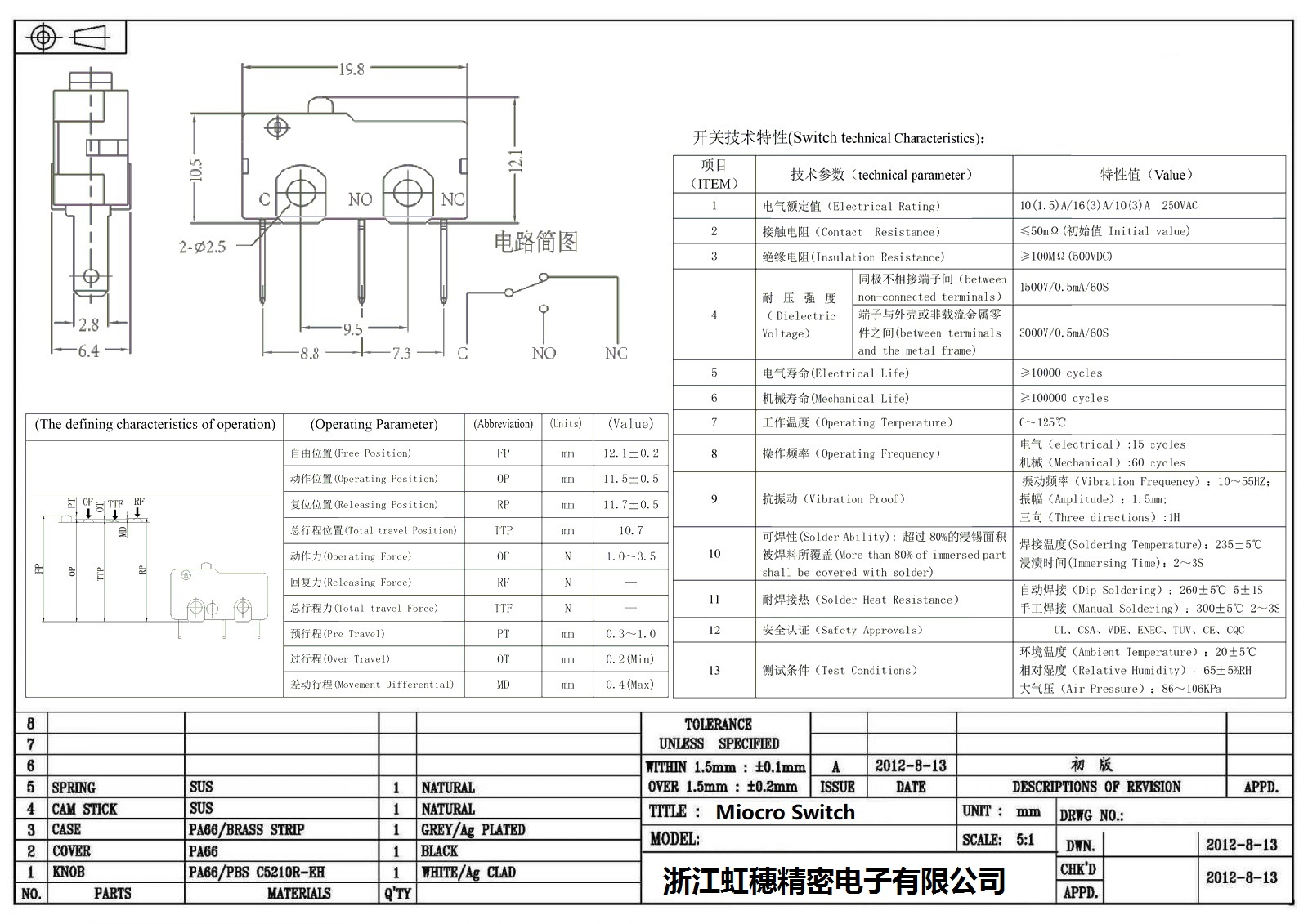 微動開關電氣特性