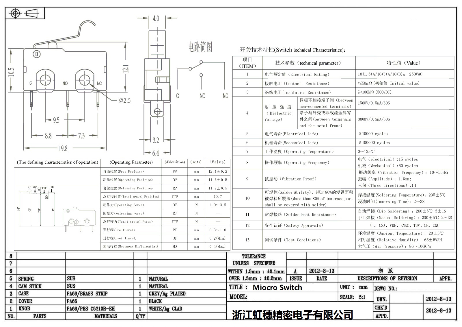 微動開關電氣特性