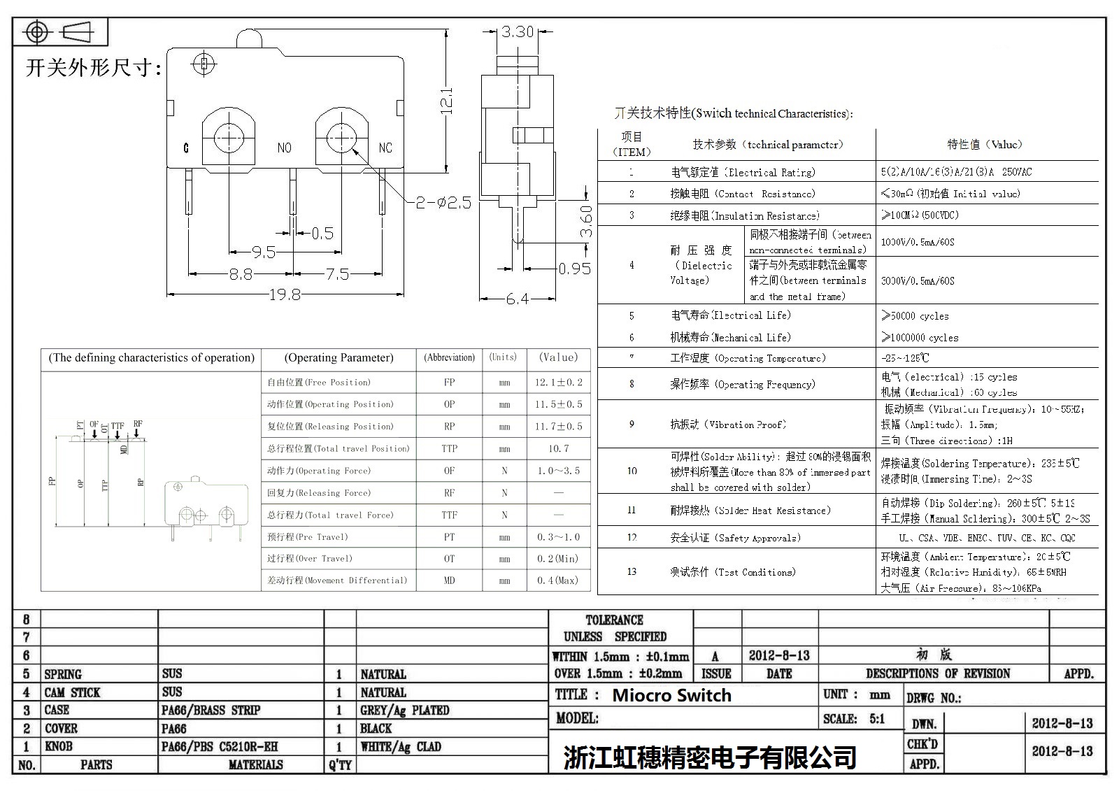 .請根據額定值電流、操作負載、驅動桿的種類、使用溫度等要求選擇合適型號的開關;