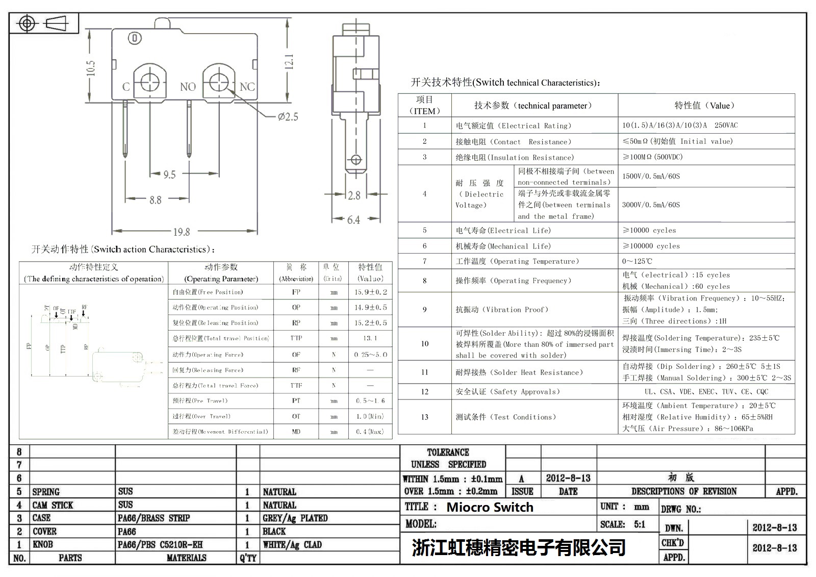 .請根據額定值電流、操作負載、驅動桿的種類、使用溫度等要求選擇合適型號的開關;