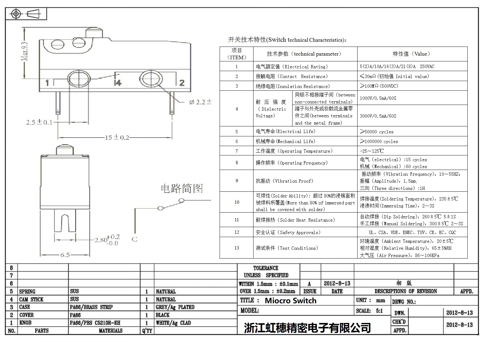 一.請根據額定值電流、操作負載、驅動桿的種類、使用溫度等要求選擇合適型號的開關;