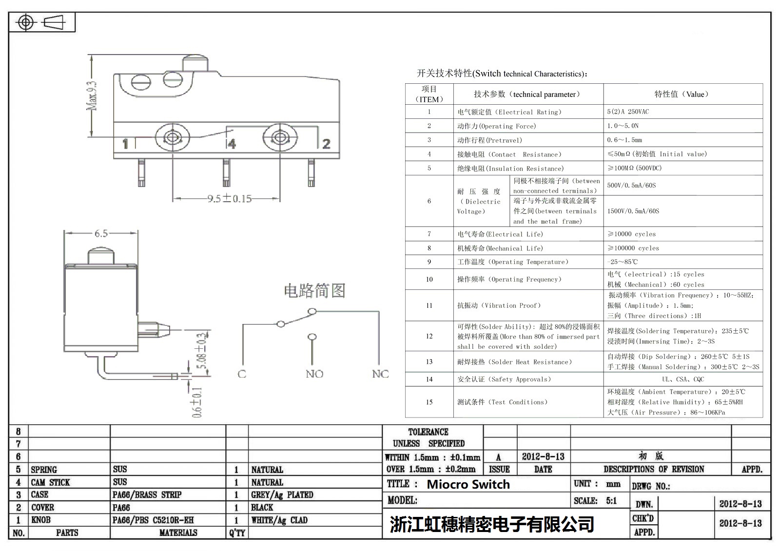 一.請根據額定值電流、操作負載、驅動桿的種類、使用溫度等要求選擇合適型號的開關;