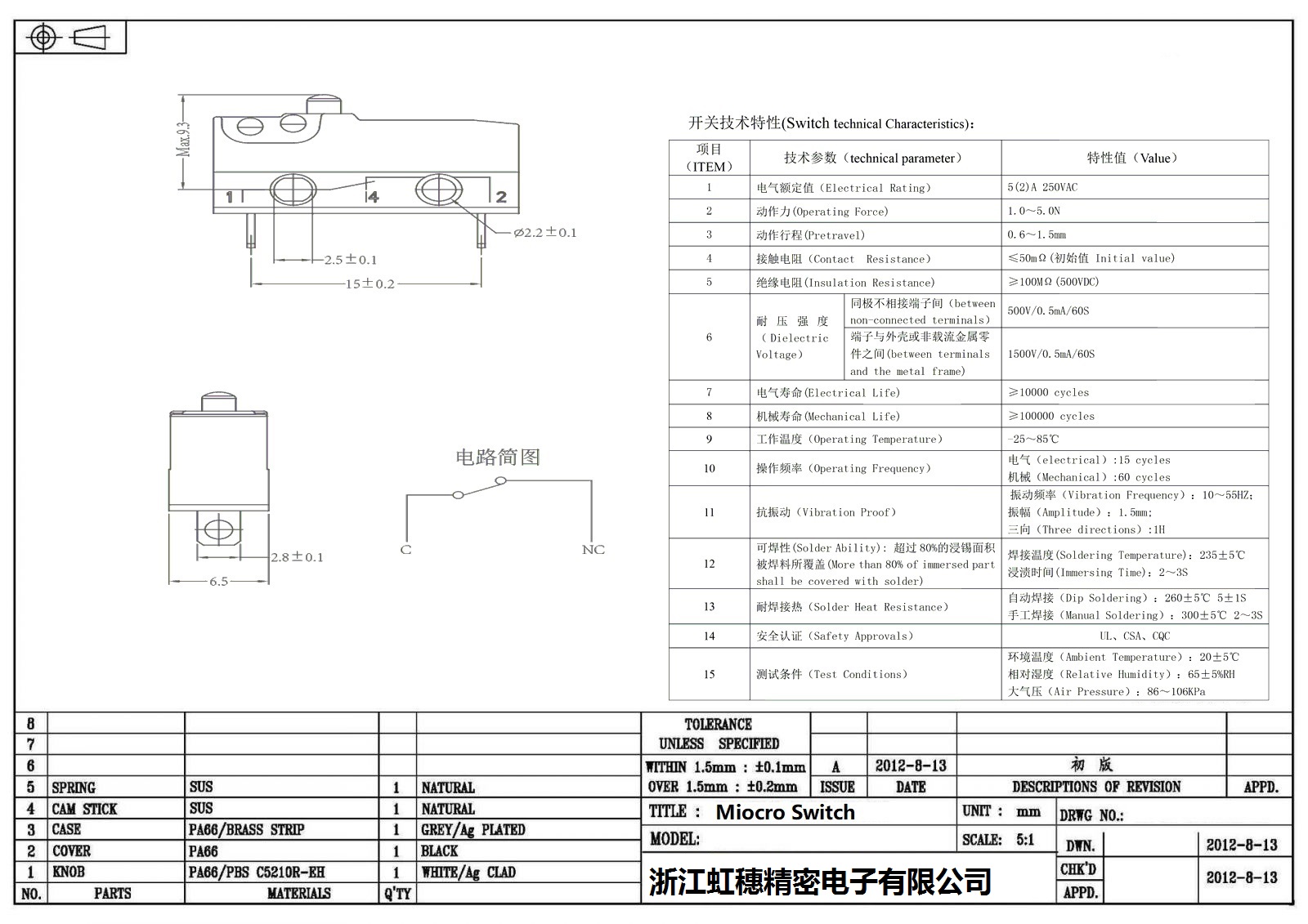 一.請(qǐng)根據(jù)額定值電流、操作負(fù)載、驅(qū)動(dòng)桿的種類、使用溫度等要求選擇合適型號(hào)的開(kāi)關(guān);