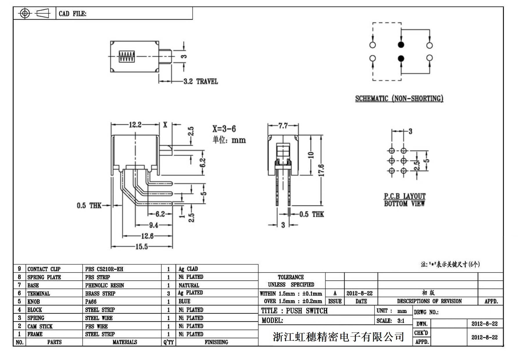 側(cè)按直鍵開關(guān)技術(shù)指標(biāo)