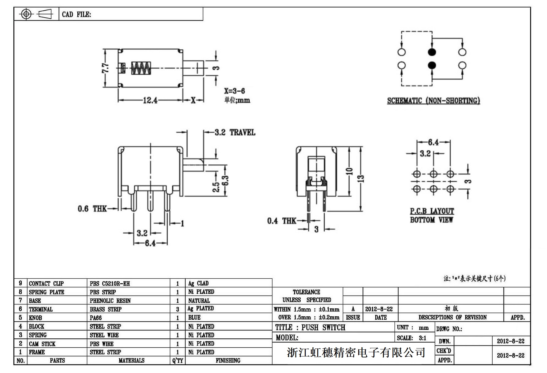側按直鍵開關技術指標