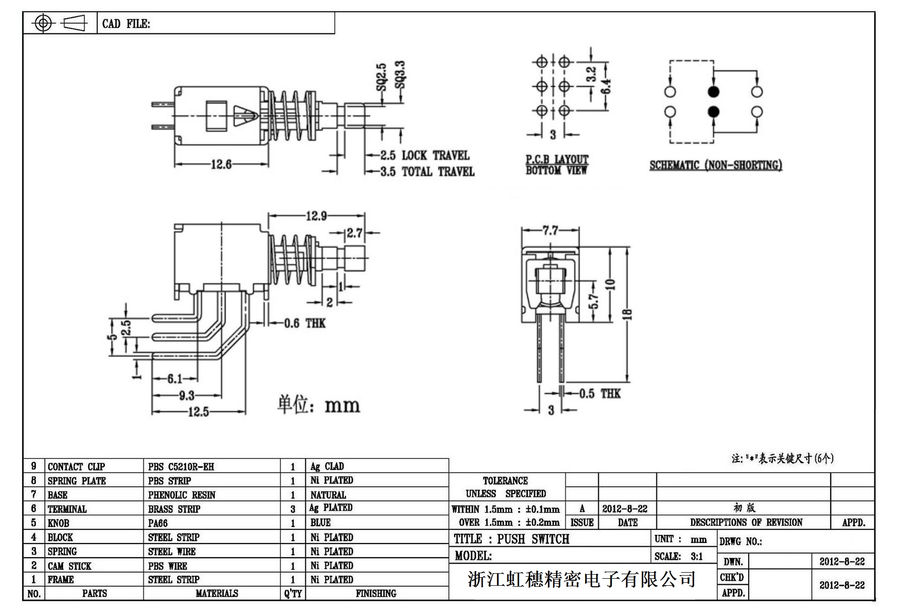 7. 操作力 : 160gf  可訂做