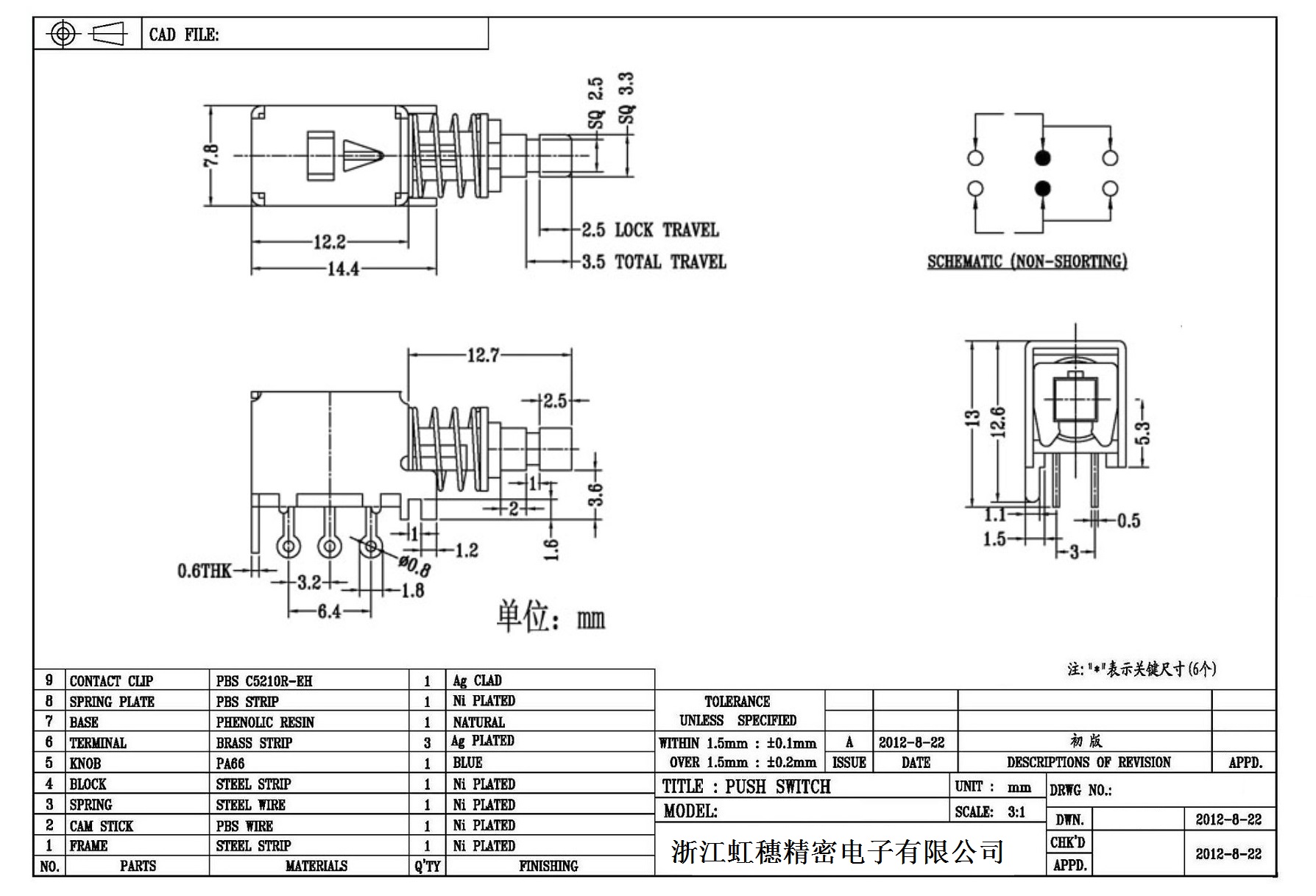 3. 絕緣阻抗: ≥100mΩ DC500V