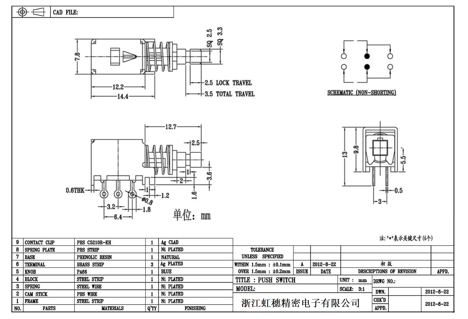 側(cè)按直鍵開關(guān)技術(shù)指標(biāo)