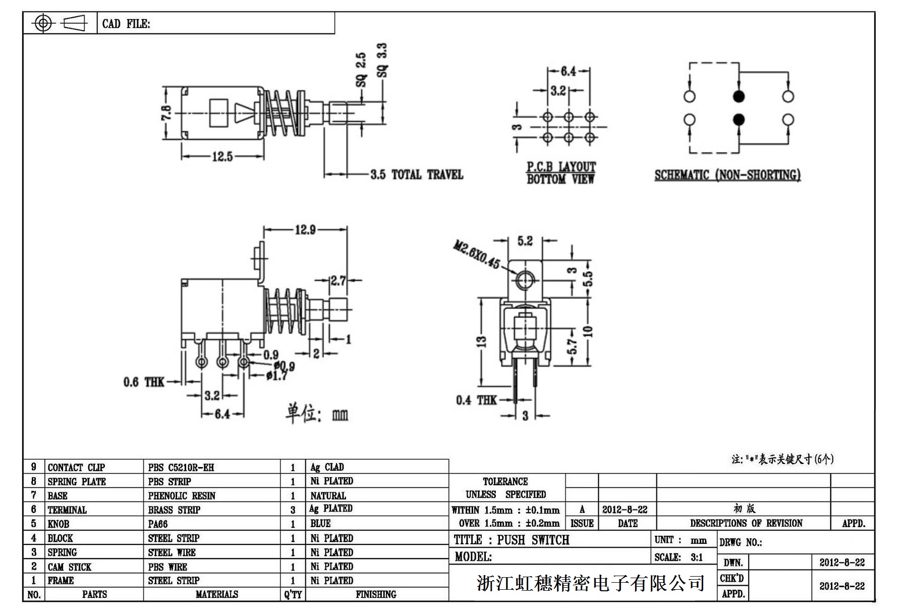 側按直鍵開關技術指標