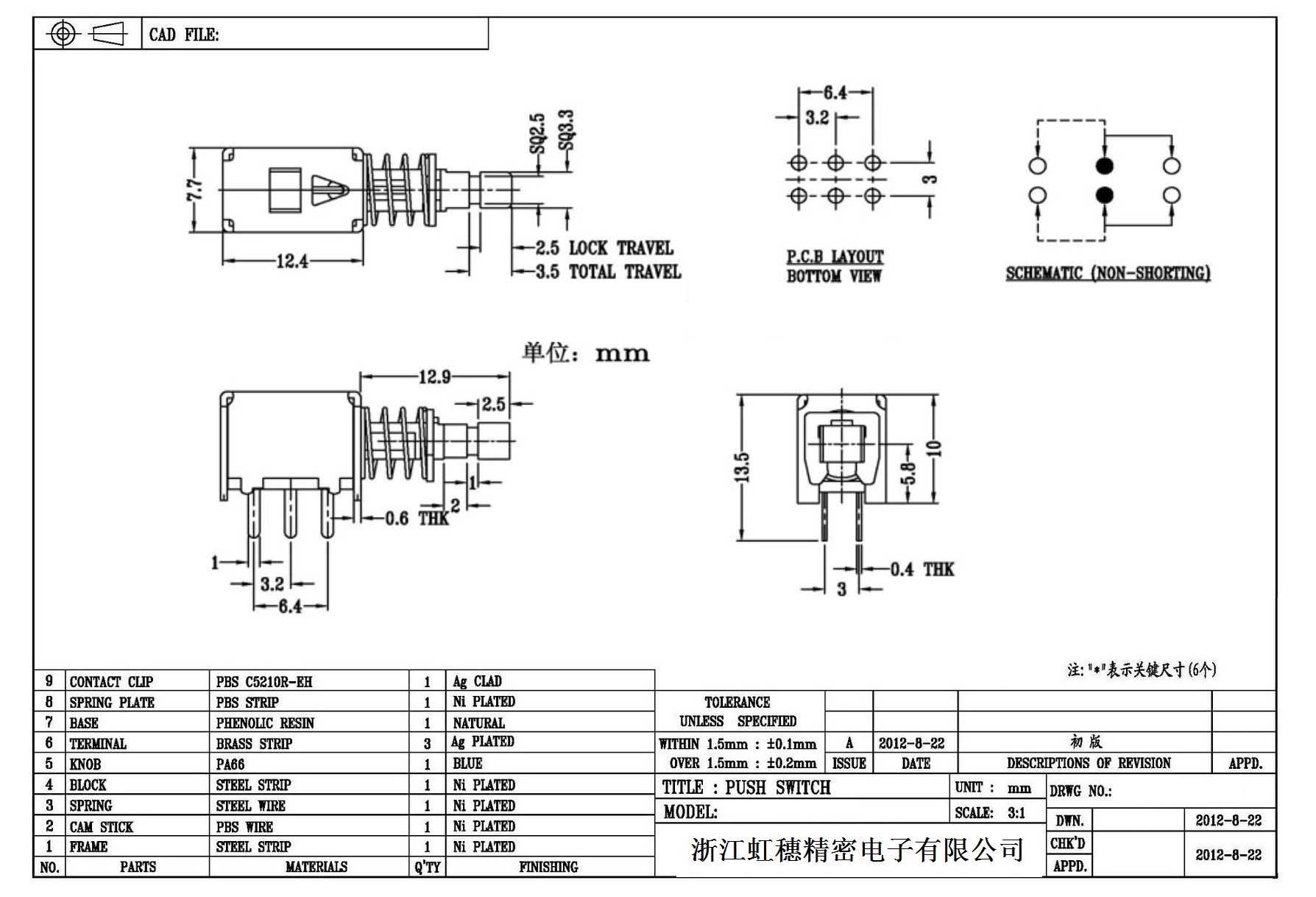 3. 絕緣阻抗: ≥100mΩ DC500V
