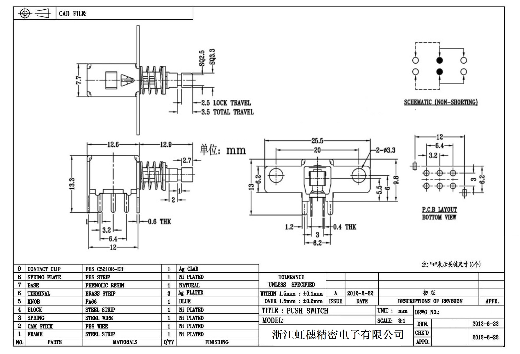 側按直鍵開關技術指標