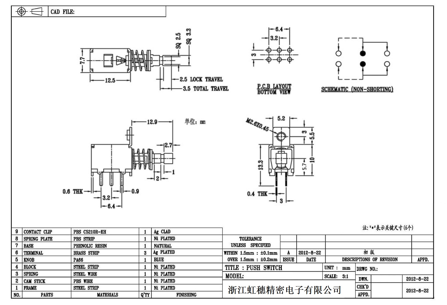 側(cè)按直鍵開關(guān)技術(shù)指標(biāo)