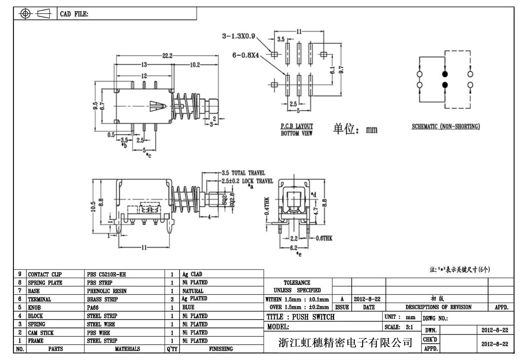 7. 操作力 : 160gf  可訂做