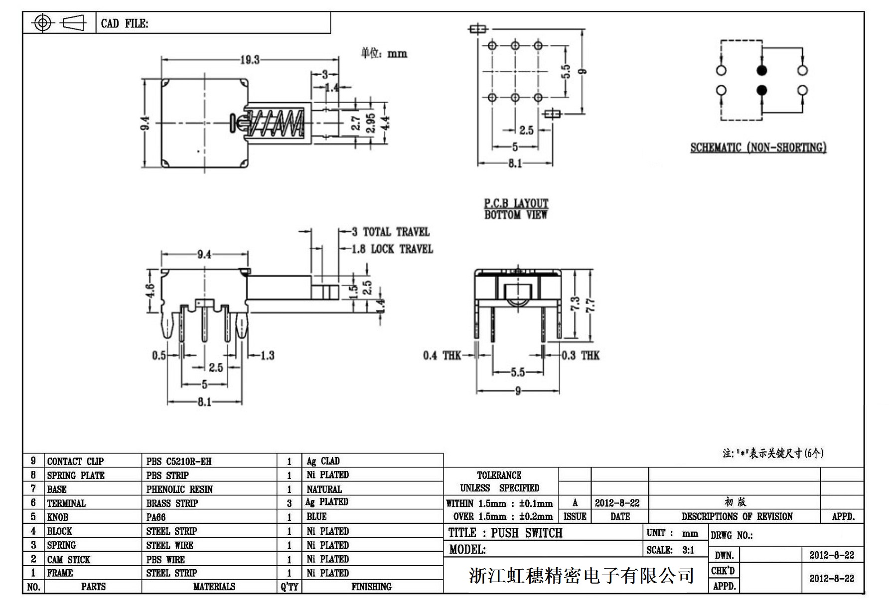 側按直鍵開關技術指標