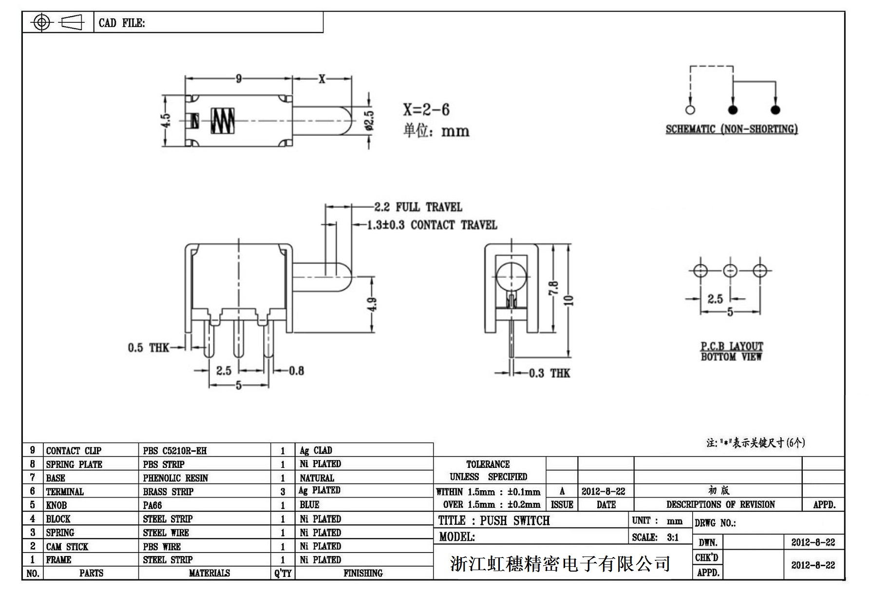 側按直鍵開關技術指標