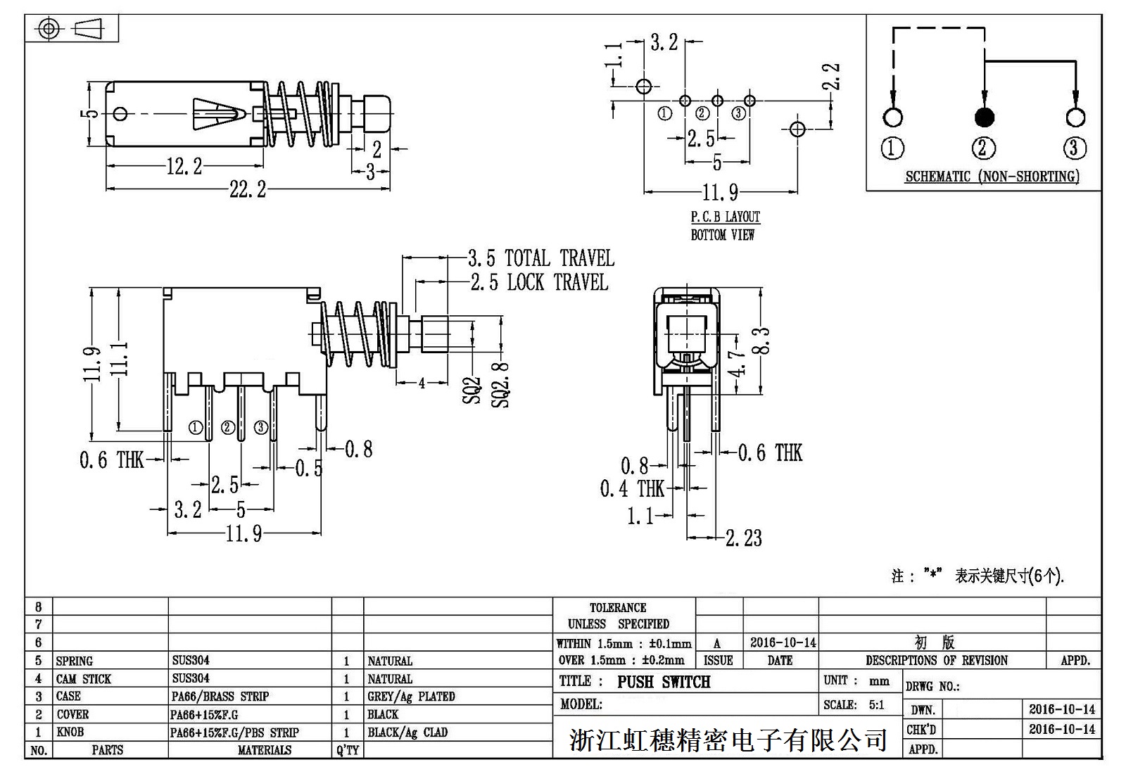 Self-Locking Switch / Puhs Button switch technical indicators
